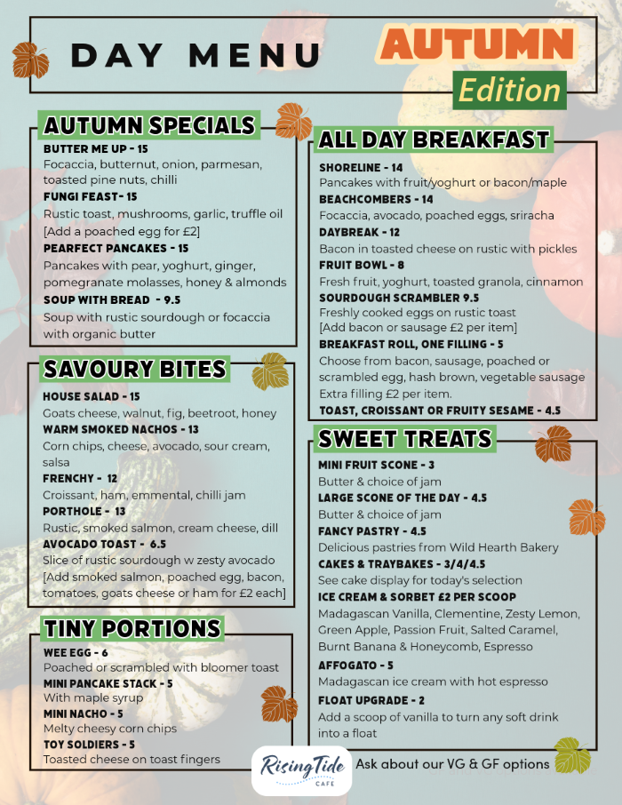 - All Day Breakfast – a delicious range of breakfast themed options from fruit bowls, to pancakes!